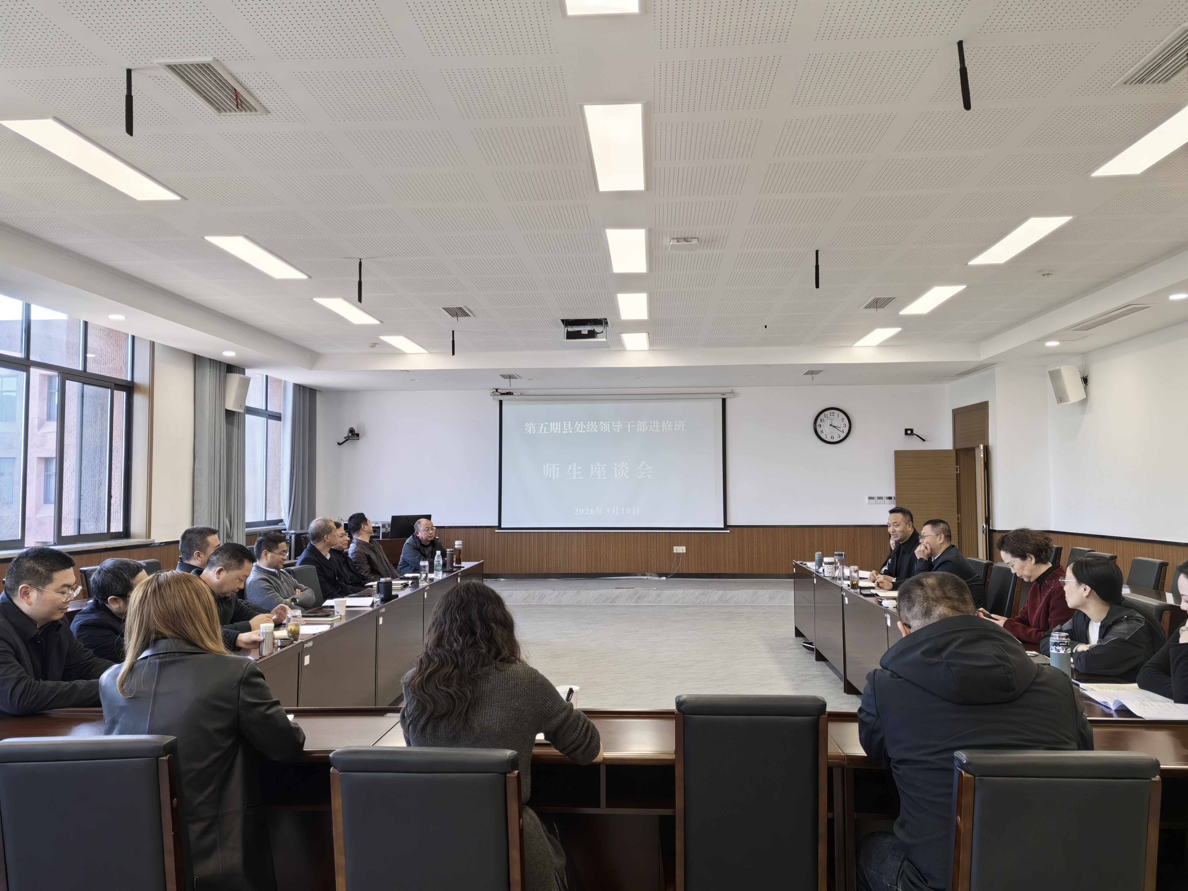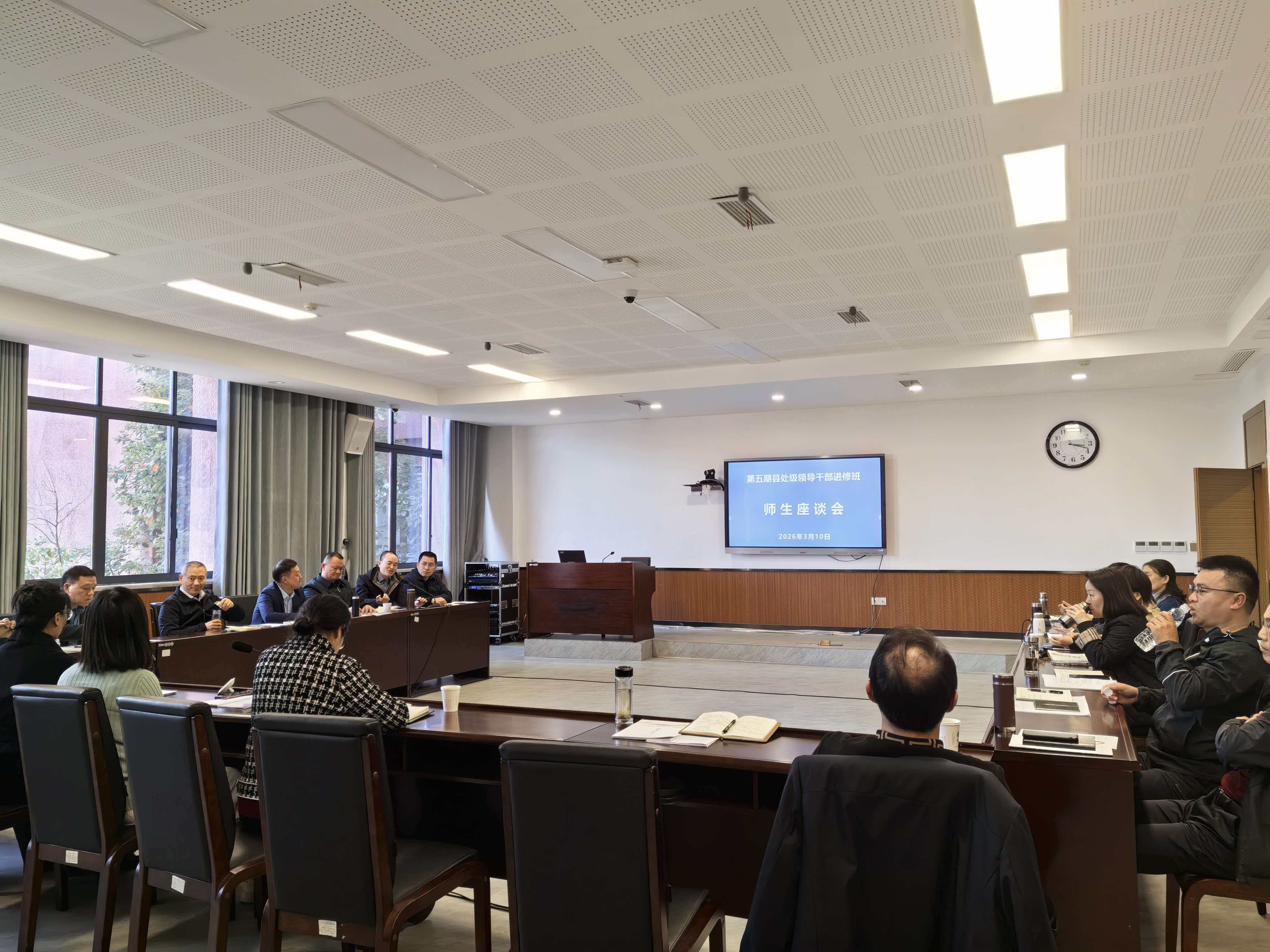 3月10日下午,市委党校召开第五期县处级领导干部进修班师生座谈会。副校长陈旭、副校长秦丹与相关任课教师及全体学员面对面交流,围绕学员“两带来”问题及培训需求展开深入研讨。