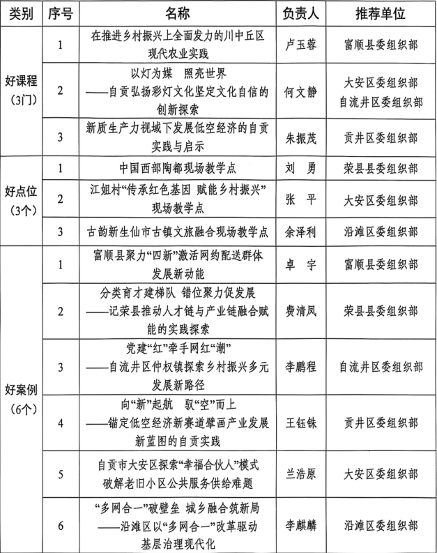 2025年自贡市干部教育培训好课程、好点位、好案例入选名单
