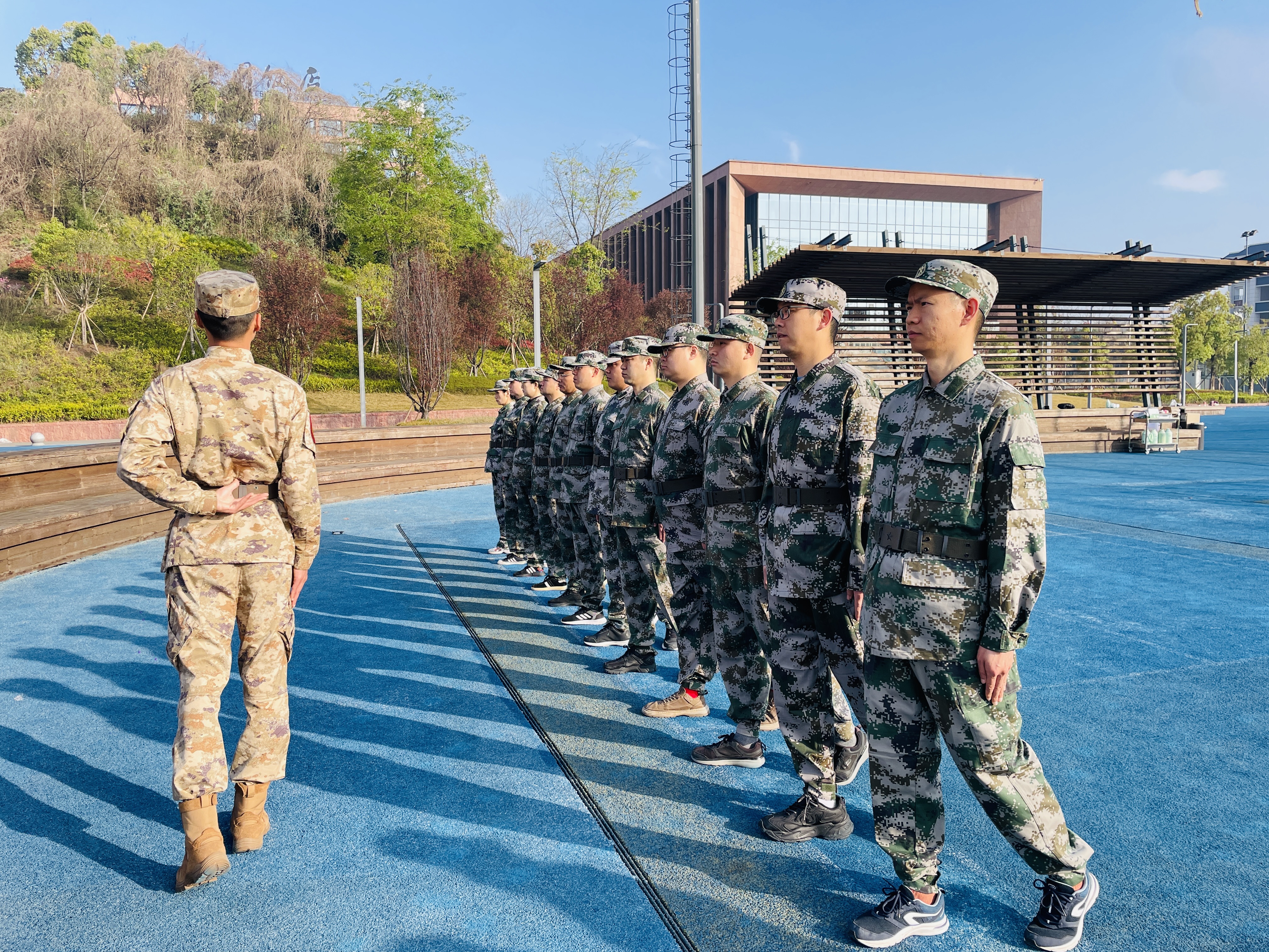 3月10日,军训进入强度提升阶段,重点开展军姿站立、匕首操基础训练,进一步锤炼学员的意志品质、身体素质和实操能力。全体学员始终以饱满的精神状态投入训练,严格遵守训练纪律。军姿训练时,学员们挺胸收腹,克服身体酸痛、风吹日晒等困难,坚守标准;匕首操训练中,教官详细讲动作要领,学员们认真模仿、反复练习,即便疲惫也绝不懈怠,彰显了青年干部的韧劲与担当。针对部分学员动作不规范问题,教官采取“一对一指导、分组化练习”模式,学员之间互帮互助、互促共进,在反复演练中提升训练质效,加深了彼此情谊,凝聚起团结协作、奋勇争先的强大合力。当日训练后,学员军姿更挺拔、动作更规范,吃苦耐劳、坚韧不拔的意志品格进一步淬炼,令行禁止、务实笃行的优良作风逐步养成。